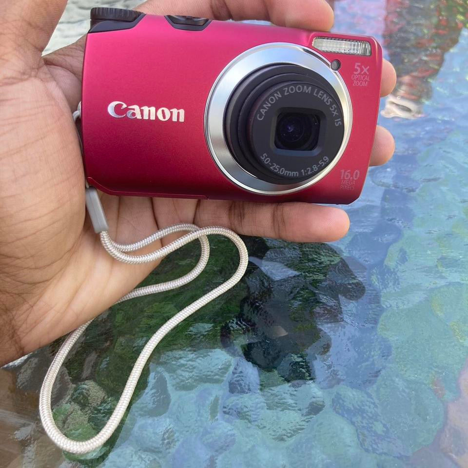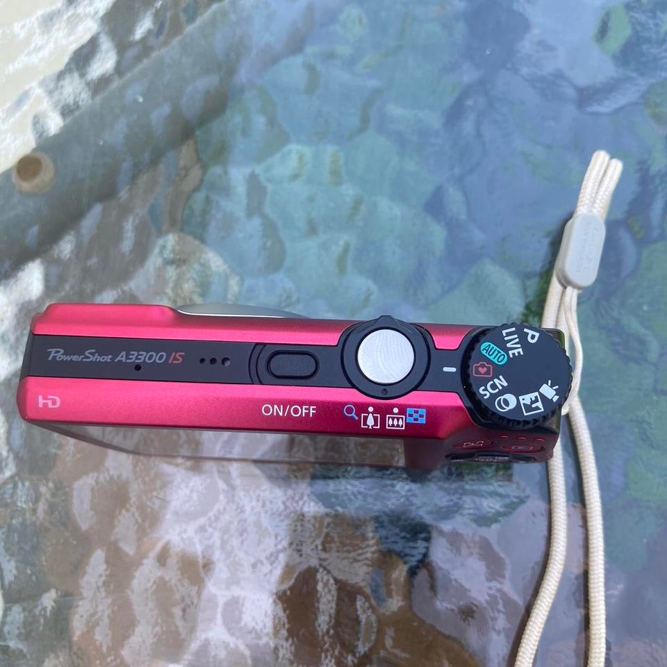 Canon PowerShot A3300 Pink RED IS 16MP Digital Camera TESTED WORKS Case Charger RARE