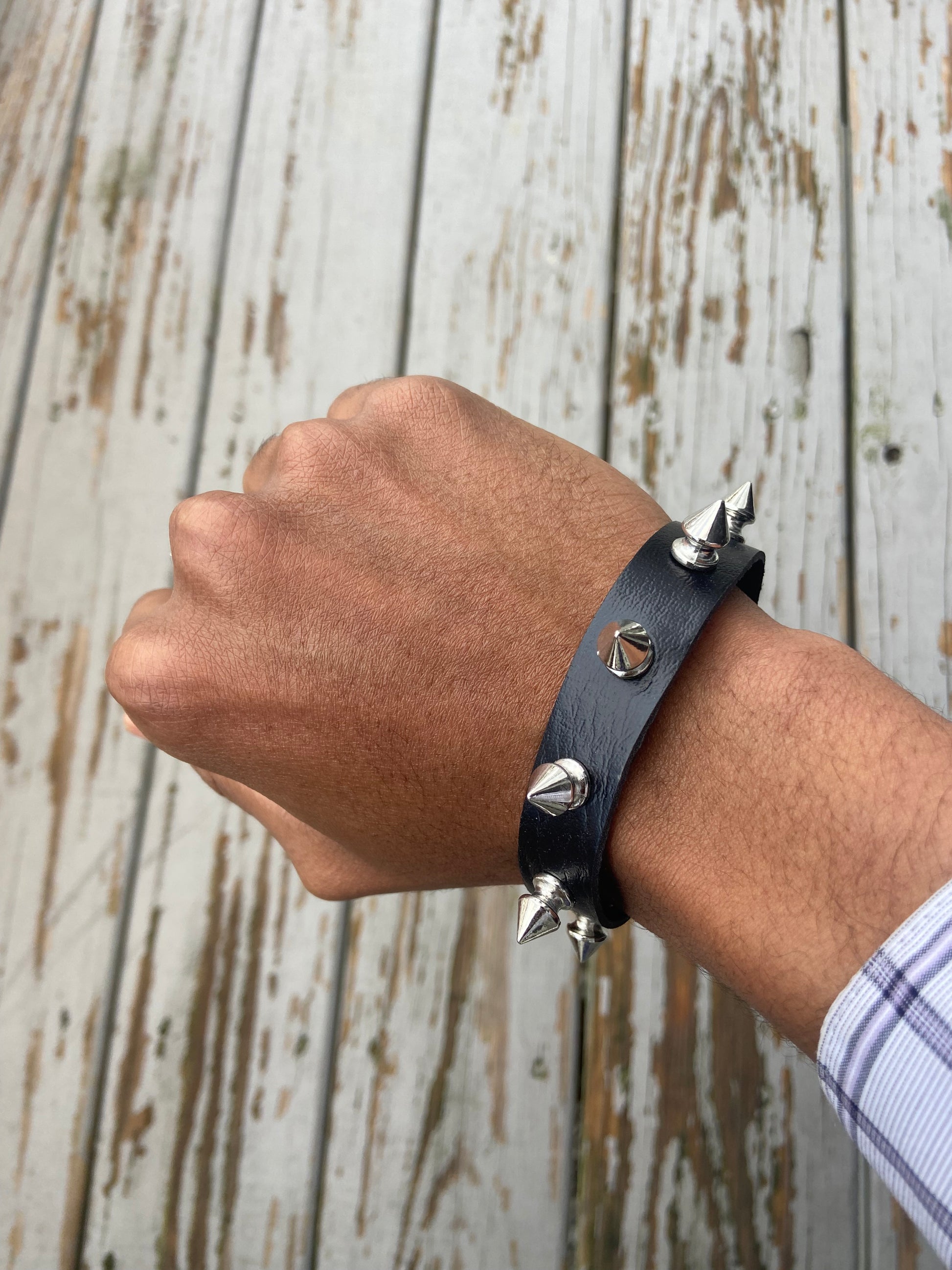 Gothic small Spike faux leather punk bracelet emo Rivets Cuff Black Wristband